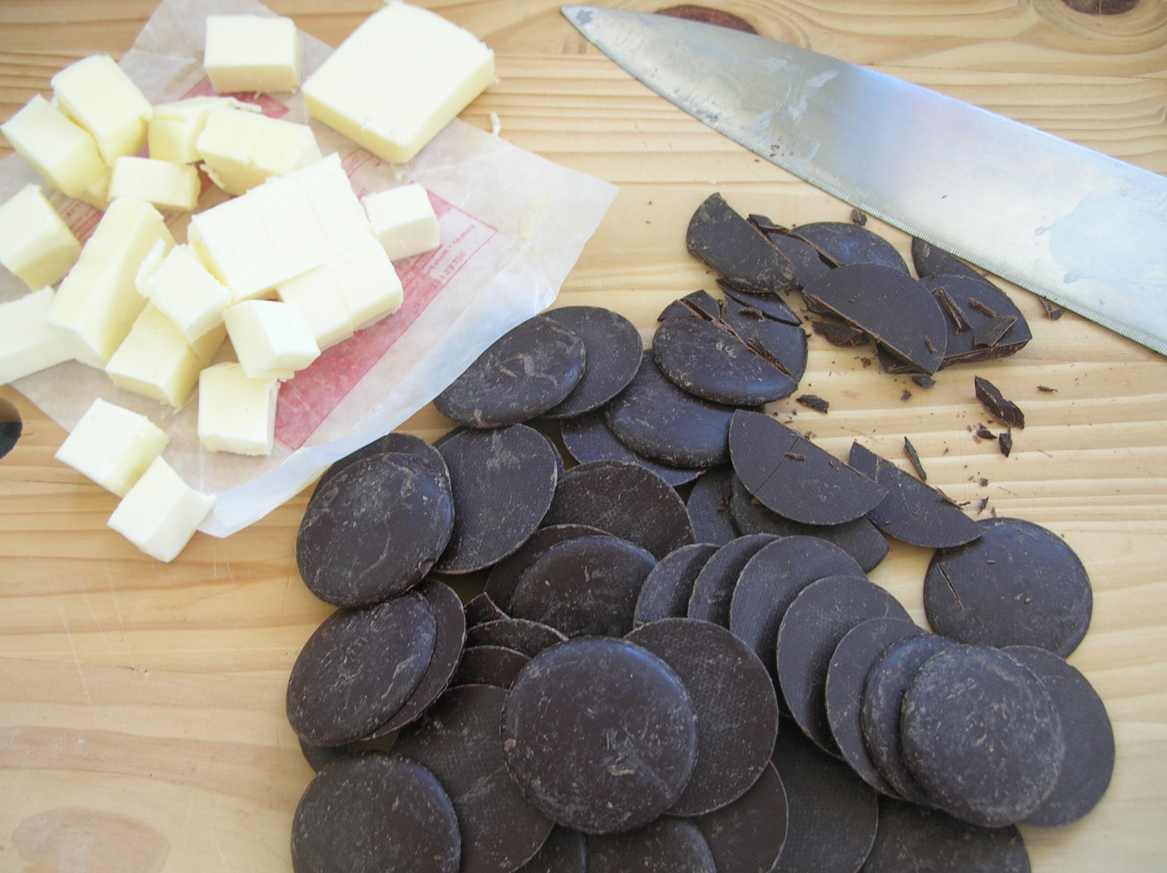 - 2 8-0z. packets of semi-sweet chocolate callets (or 16 oz. of bittersweet chocolate, finely chopped
