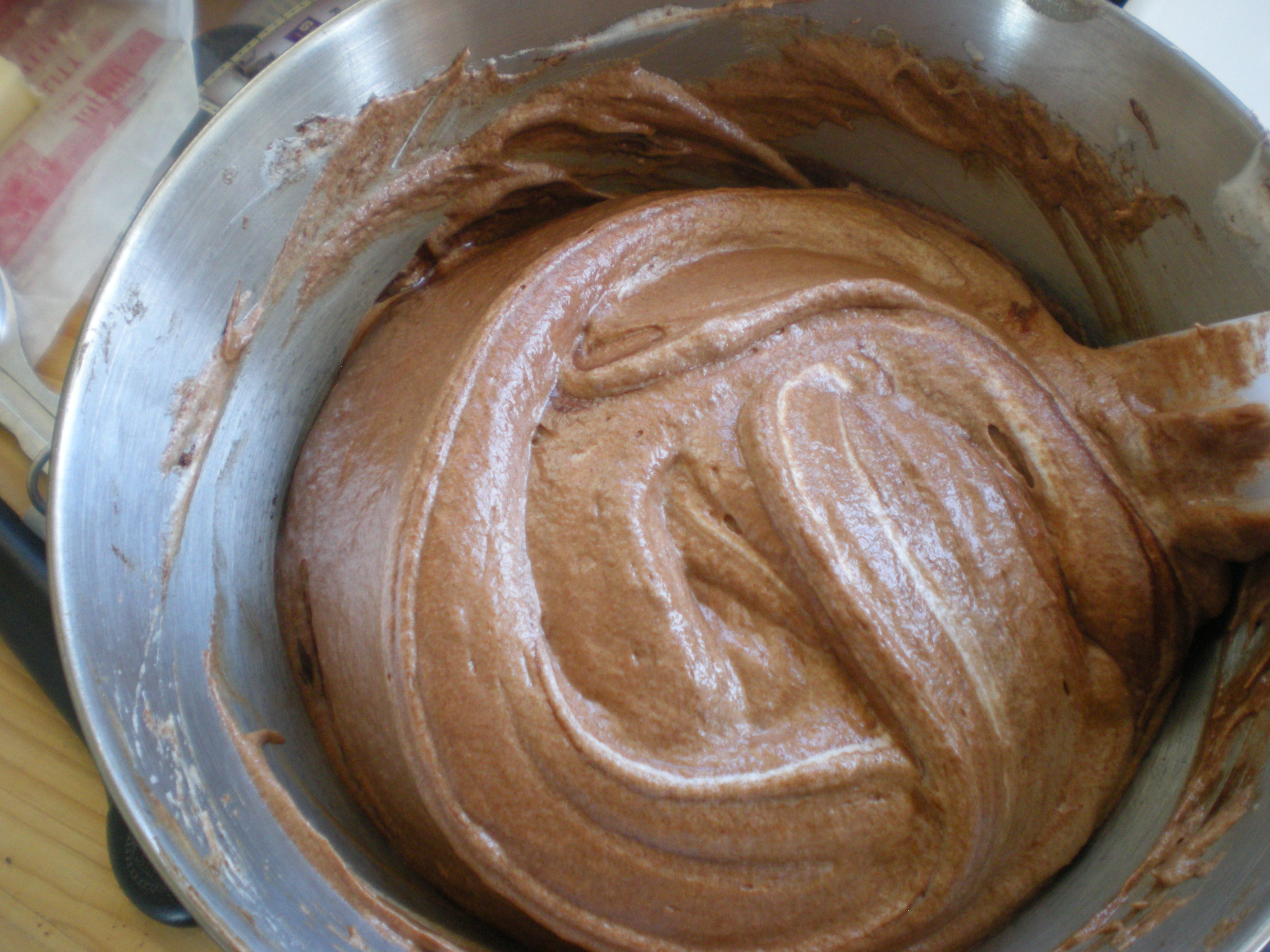 4. Using a rubber spatula, carefully fold in the egg whites. Do not mix or stir, just slowly fold the egg whites into the chocolate mixture.’ Gentle’ is the key word here, otherwise the fluffy egg whites will collapse, which of course form the main basis for the success of the mousse.