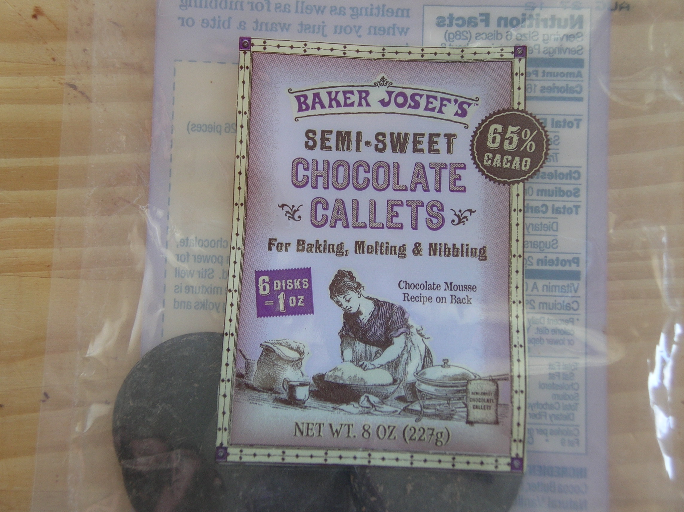 In a double boiler, over low heat, melt 14 pieces of the chocolate callets.