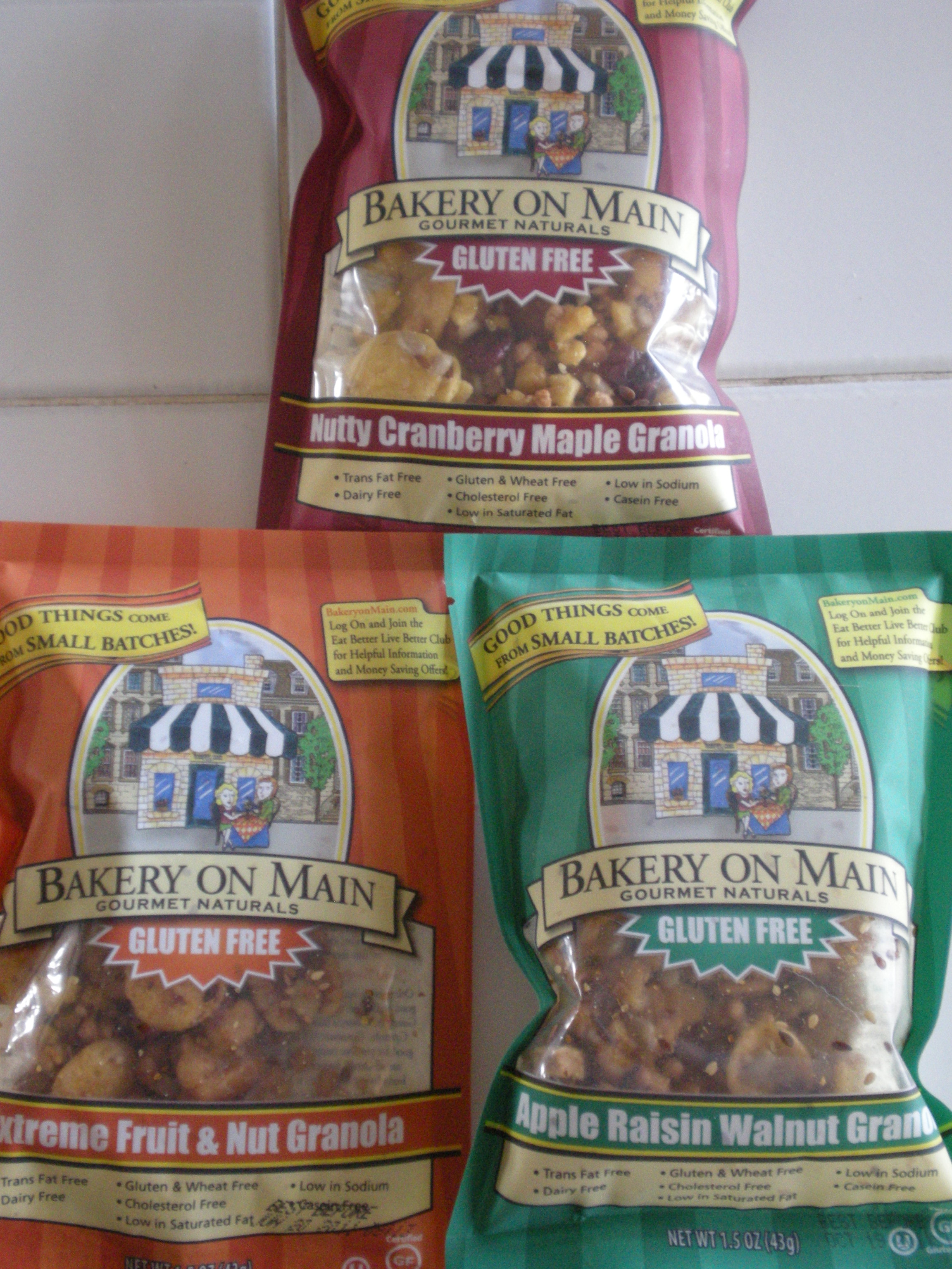 A few weeks ago, when shopping at our local Vitamin Cottage, we were passing through the cereal isle, and came across something wonderful; a brand new gluten free granola from Bakery on Main. Life sometimes offers some interesting coincidences, as though our thoughts were picked up by the universe, and caught by someone at Bakery on Main. Anyway, they contacted us a short time later about writing an independent product review. Of course, we had to say yes. They forwarded us a few samples of their delicious products, which included: two Fiber Power Granola samples (triple berry granola, and cinnamon raisin granola),